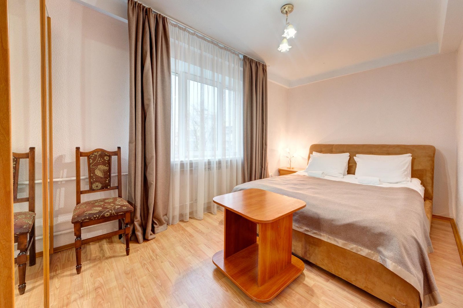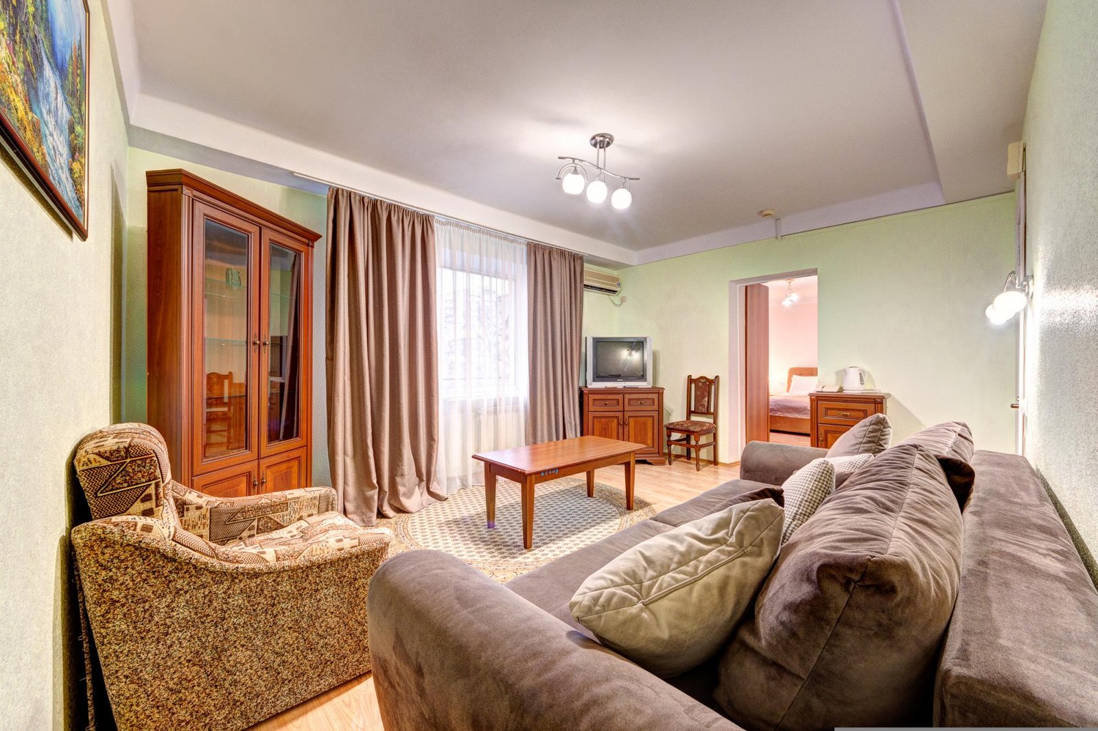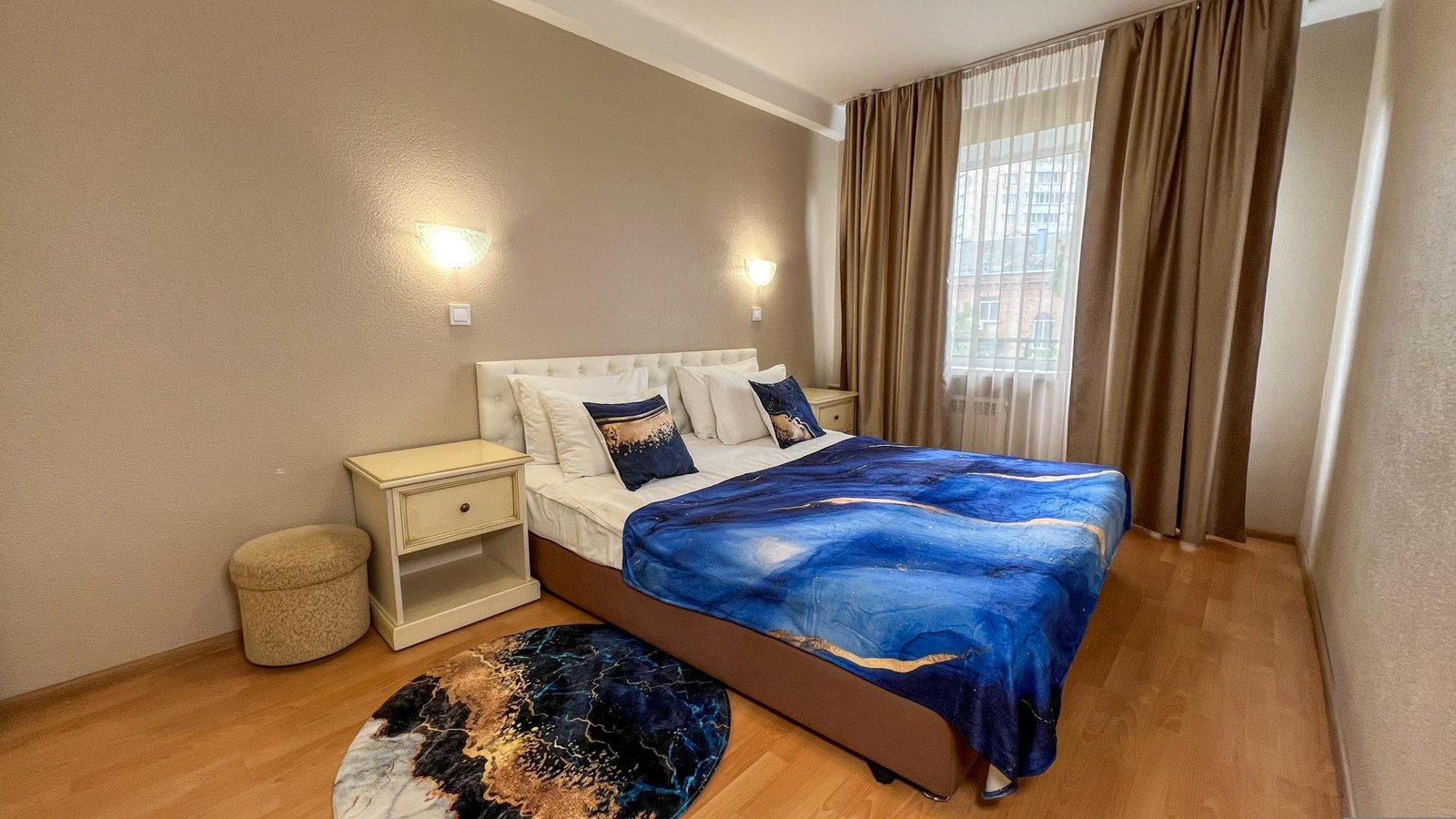 Просторий та комфортний номер, ідеальний для проживання 2–4 гостей. У номері — велике двоспальне ліжко та розкладний двоспальний диван, кондиціонер, телевізор, холодильник, шафа для одягу, комод, письмовий і обідній столи, крісло та повне оснащення для зручного відпочинку.